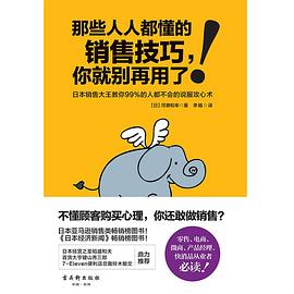 Posted in 营销书籍 那些人人都懂的销售技巧,你就别再用了 作者:[日]河濑和幸 页数:224 评价:7.8 出版日期:Nov-16 简介:本书讲究实效,贴近日常销售工作,以实践案例让读者学习到99%的人都不会用的销售技巧,使读者做到举一反三,购买五步骤的实战演练帮助读者快速掌握销售技巧。销售大王那些99%的人都不会用的销售技巧,帮你突破销售瓶颈,让你的业绩翻5倍!
